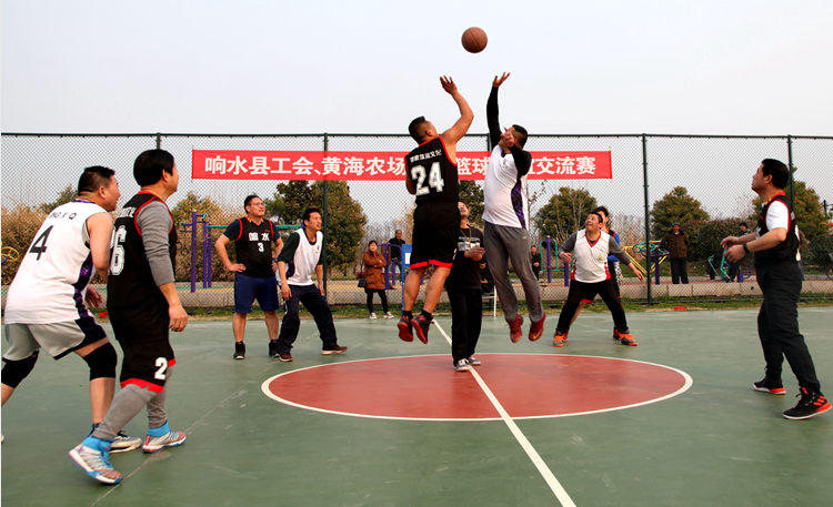 為豐富職工文化生活,促進溝通交流。日前,由黃海農場工會與響水縣工會共同舉辦的籃球友誼交流賽在黃海職工文化廣場舉行。黃海農場黨委書記王亦勤,縣委常委、宣傳部長李運連,縣委常委、人武部政委顧建明,黃海農場副場長薛亞林、工會主席裴書中共同出席。