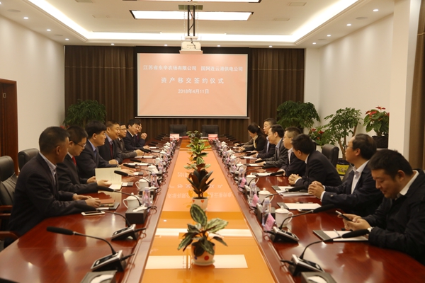 4月11日上午,江蘇省東辛農(nóng)場有限公司與國網(wǎng)連云港供電公司在東辛賓館一樓會(huì)議室舉行資產(chǎn)移交簽約儀式。國網(wǎng)連云港供電公司黨委書記、副總經(jīng)理吳旺東、副總經(jīng)理藺華、東辛農(nóng)場有限公司黨委書記、董事長、總經(jīng)理韓中書、黨委副書記、紀(jì)委書記、監(jiān)事會(huì)主席王信學(xué)、副總經(jīng)理徐中兵、劉春利及雙方相關(guān)單位、部門負(fù)責(zé)人參加簽約儀式。國網(wǎng)連云港供電公司代表藺華、東辛農(nóng)場有限公司代表王信學(xué)在資產(chǎn)移交協(xié)議上簽字。