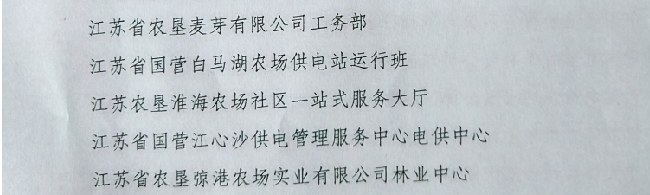 筆者從江蘇省總工會文件(蘇工發[2018]8號)獲悉,江蘇農墾淮海農場社區一站式服務大廳、蘇墾麥芽有限公司工務部、白馬湖農場供電站運行班、江心沙供電管理服務中心電供中心、?港農場實業有限公司林業中心等五個單位喜獲江蘇省“工人先鋒號”榮譽。據悉,全省共有529個集體獲江蘇省工人先鋒號榮譽稱號。