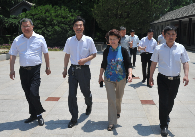 在農(nóng)建四師舊址和師首長舊居辦公室里,李衛(wèi)東向徐于斌等政協(xié)領導介紹了農(nóng)建四師舊址的維護建設和師首長們的辦公生活情況及二期工程的籌建情況。徐于斌等對淮海把農(nóng)建四師舊居保護得這么完好表示出由衷地贊嘆。