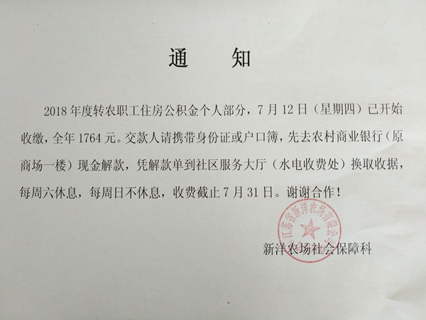 近日,2018年度轉農職工住房公積金個人部分開始收繳,新洋利用電視字幕、微信群等載體廣而告之。轄區(qū)內轉農職工陸續(xù)前往一站式服務大廳繳納費用。