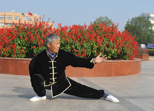 兒子的鼓勵,教練會長的耐心勸導和眾多太極好友的大力支持,從此也讓林耀國克服了自卑的心理,增強了學練太極的信心。他不但天天早上第一個到現(xiàn)場,找先來的陪著他練太極,晨練結束后,還留下來請教練對他補課,糾正動作,講解運拳舞劍道理。回家后他也是對著鏡子堅持學練,特別是對高難度動作反復操練,細心琢磨每個動作的規(guī)范要領,真正做到了拳不離手,訣不離口。功夫不負有心人,對一個上了歲數(shù)的老人,也這樣的磨練,他從不會到會,從會到比較熟練,僅過了幾個月的時間,基本上能把楊式太極拳24-48式、太極劍32-42式很流暢地用動作展示出來,現(xiàn)在的他已經(jīng)是太極協(xié)會里的主力隊員了。