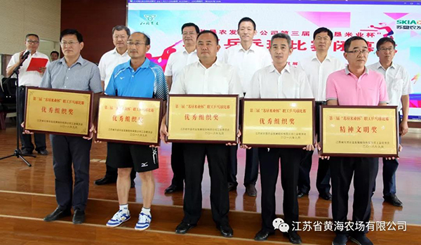 日前,蘇墾農發股份公司第三屆“蘇墾米業杯”乒乓球比賽圓滿落幕。新洋分公司副總經理仰海洲出席頒獎儀式。