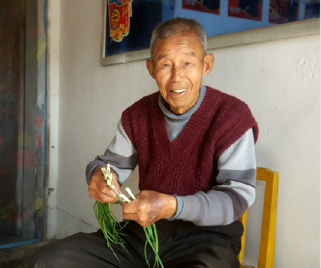李朋友飲食比較清淡,少肉多素,油鹽也不多。每天下午2點(diǎn)左右,他會(huì)定時(shí)喝些兒孫們孝敬給他享用的腦白金、牛奶等營養(yǎng)品。每月有近7000元的工資,想買什么就買什么,那么多子女一個(gè)也不過問,只是由著他怎么處理,但老人從不亂花瞎用。老人很會(huì)做人,也會(huì)討兒孫們的歡心,每當(dāng)他用存單積攢到6萬元錢時(shí),就會(huì)6個(gè)子女一家1萬地均分,讓兒孫們貼補(bǔ)家用。李朋友對(duì)子女出手大方,教育投入上一點(diǎn)也不含糊,一定要他們練好書,學(xué)會(huì)技能,所以他的子孫都在自食其力地工作,這讓李朋友很是欣慰。當(dāng)然,李朋友在兒孫中威望極高,逢年過節(jié)20多個(gè)子孫紛紛來到家中團(tuán)聚,給老人帶來孝敬的物品,為老人請(qǐng)安祝福,讓老人的晚年生活充滿了快樂!圖為李朋友老人在做晾被栽菜和擇菜時(shí)的鏡頭。