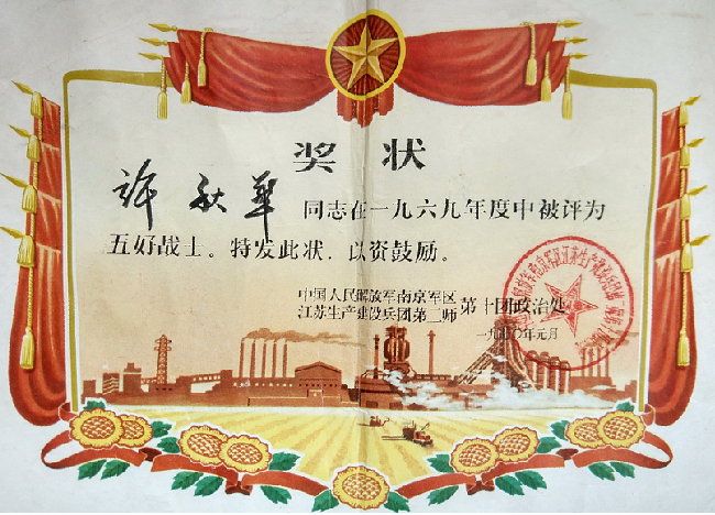崢嶸歲月稠 無錫老知青許秋華捐獻上山下鄉時的獎狀和致革命家長同志們的一封信