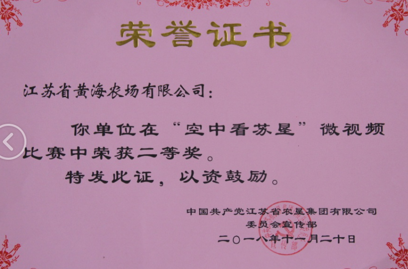 在日前結(jié)束的江蘇農(nóng)墾新聞宣傳工作會議上,黃海農(nóng)場有限公司拍攝制作的微視頻《空中看蘇墾—蘇北明珠》及《蘇北明珠、美麗黃海》品牌形象宣傳片分別榮獲二等獎;黃海農(nóng)場有限公司網(wǎng)站被集團公司《評為2018年度優(yōu)秀網(wǎng)站》。