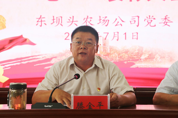 黨委書(shū)記滕金平在慶祝建黨98周年暨“七一”表彰大會(huì)上作講話(huà)。他指出,一要不忘歷史、牢記初心。開(kāi)展主題教育,學(xué)習(xí)總書(shū)記講話(huà),回顧革命歷程,領(lǐng)悟初心,對(duì)照為群眾謀幸福的標(biāo)兵,去驗(yàn)證自己的初心,把自己的初心融入到為東壩頭職工群眾謀幸福的事業(yè)中;二要立足時(shí)代、擔(dān)當(dāng)使命。要以實(shí)現(xiàn)東壩頭“精強(qiáng)黨建、精致農(nóng)業(yè)、精品種業(yè)、精美城鎮(zhèn)”的“鄉(xiāng)村振興戰(zhàn)略-農(nóng)墾在行動(dòng)”為目標(biāo),培育能打會(huì)戰(zhàn)、一心為職工群眾著想的高質(zhì)量團(tuán)隊(duì),培育甘為奉獻(xiàn)、沖鋒在前、勇于擔(dān)當(dāng)?shù)膬?yōu)秀共產(chǎn)黨員隊(duì)伍,將企業(yè)發(fā)展融入到實(shí)現(xiàn)老百姓對(duì)美好生活的向往之中,立足新時(shí)代、勇于擔(dān)當(dāng),為職工群眾謀幸福、為民族謀復(fù)興的使命;三要打造過(guò)硬支部、構(gòu)筑戰(zhàn)斗堡壘。著力打造能力過(guò)硬、發(fā)展過(guò)硬、服務(wù)過(guò)硬、作風(fēng)過(guò)硬的黨支部。他強(qiáng)調(diào),全員必須自覺(jué)把思想和行動(dòng)統(tǒng)一到習(xí)近平總書(shū)記的重要講話(huà)精神上來(lái),牢牢把握“守初心、擔(dān)使命、找差距、抓落實(shí)”的總要求,認(rèn)真學(xué)習(xí)貫徹會(huì)議精神,確保主題教育取得扎扎實(shí)實(shí)的成效,向黨的98周歲生日和祖國(guó)的70周歲生日獻(xiàn)禮!