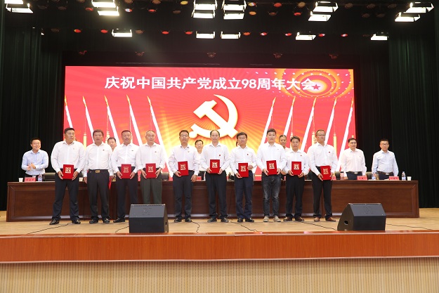 7月1日下午,濱淮演藝中心舞臺中央黨徽在10面紅旗的映襯下熠熠生輝,整個會場莊嚴熱烈。這是濱淮農(nóng)場黨委慶祝中國共產(chǎn)黨成立98周年活動。公司領(lǐng)導李德利、傅龍光、李文忠、馬傳武、鄧權(quán)才、劉雄飛,各支部書記、黨員代表、新發(fā)展黨員、社區(qū)老黨員代表共300多人參加活動。集團黨委“不忘初心、牢記使命”第三巡回指導組組長何榮方、副組長徐國成等出席活動。公司黨委副書記、董事長傅龍光主持慶祝活動。