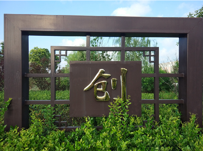 “創(chuàng)”字的基本含義是“開始,開始做”的含義,同時(shí)也有“傷”的字義。“創(chuàng)”字的構(gòu)成是由“倉”和“刂”組成,“倉”字說明江蘇農(nóng)墾是一個(gè)養(yǎng)鍵時(shí)期保得住、供得上的國家“大糧倉”;“刂”字是一把刀刃向內(nèi)的刀,說明江蘇農(nóng)墾已經(jīng)發(fā)展了60多年,經(jīng)濟(jì)效益連續(xù)多年位居全國農(nóng)墾系統(tǒng)和江蘇省屬國有企業(yè)前列,雖然成績巨大,但面對(duì)發(fā)展的壓力,仍然需要我們每一個(gè)農(nóng)墾人要有刀刃向內(nèi),刮骨療毒和自我療傷的勇氣,要有敢于面對(duì)的自我解剖的精神,不斷增強(qiáng)自我凈化、自我完善、自我革新、自我提高的能力,這樣的江蘇農(nóng)墾才能輕裝上陣,砥礪前行,才能在發(fā)展路上行穩(wěn)致遠(yuǎn)。圖為淮海公園中的“奮奉創(chuàng)”大字。