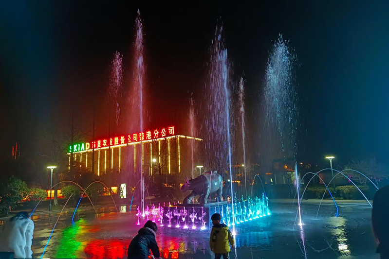 今年以來(lái),為進(jìn)一步扮靚農(nóng)場(chǎng)小城鎮(zhèn),農(nóng)場(chǎng)投資70多萬(wàn)元實(shí)施農(nóng)和廣場(chǎng)原音樂噴泉景觀進(jìn)行升級(jí)改造項(xiàng)目,編排了《我和我的祖國(guó)》《紅旗飄飄》《夢(mèng)駝鈴》《讓我們蕩起雙槳》《長(zhǎng)江之歌》《夜夜夜漫長(zhǎng)》6首歌曲。夜色降臨,農(nóng)和廣場(chǎng)的音樂噴泉現(xiàn)場(chǎng),一道道水柱從廣場(chǎng)中噴起,燈光、水幕、音樂交織在一起,伴隨著音樂旋律的起伏,變幻出一組組極富動(dòng)感的優(yōu)美造型,構(gòu)成音樂噴泉水舞秀,吸引眾多居民前來(lái)圍觀欣賞拍攝。“我的家鄉(xiāng)好美啊!為農(nóng)場(chǎng)美景點(diǎn)贊,漂亮、弶農(nóng)一道美麗的風(fēng)景……”發(fā)布到網(wǎng)絡(luò)平臺(tái)上獲無(wú)數(shù)網(wǎng)友的點(diǎn)贊。五彩的燈光、歡快的音樂,為弶農(nóng)迷人的夜晚增添了一份美輪美奐的視覺和聽覺的盛宴。
