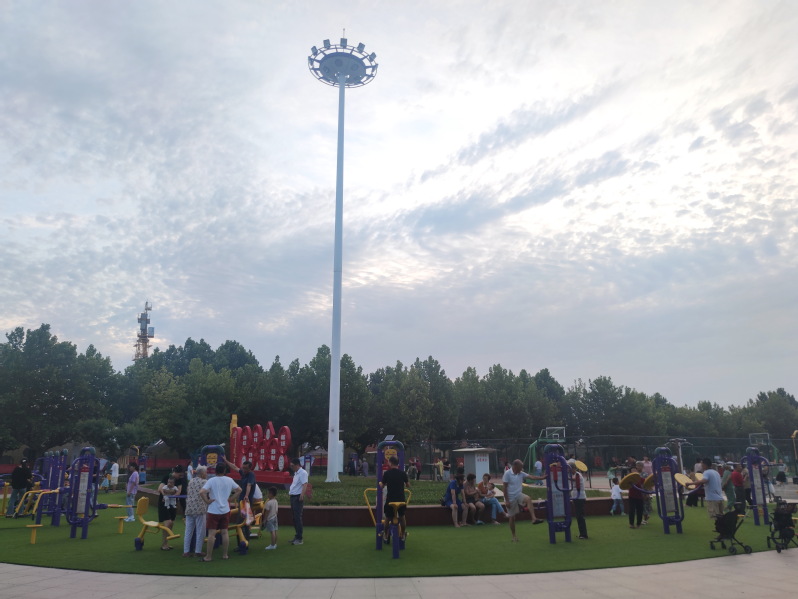 7月19日傍晚,江蘇省射陽縣淮海農場職工休閑體育運動廣場重新開放,廣場南側橢圓形的花池邊,新安裝的34套嶄新的健身器材立即吸引了周邊的職工居民和孩童等前來愜意地玩耍,場面十分熱鬧壯觀。