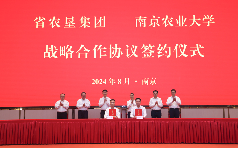 8月9日下午,省農(nóng)墾集團與南京農(nóng)業(yè)大學戰(zhàn)略合作協(xié)議簽約儀式在南京舉行。集團公司黨委書記、董事長吳本輝致辭,南京農(nóng)業(yè)大學黨委書記王春春出席并講話。集團公司黨委副書記、總經(jīng)理姜建友、副書記朱浩出席簽約儀式,黨委委員、副總經(jīng)理王立新主持簽約儀式,南京農(nóng)業(yè)大學校長陳發(fā)棣、黨委副書記吳榮順、黨委常委、副校長單正豐出席簽約儀式。