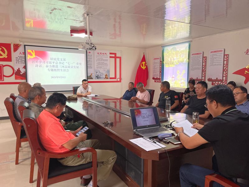 會(huì)上,居民支部書記魏鵬帶領(lǐng)與會(huì)黨員學(xué)習(xí)慶祝中國共產(chǎn)黨成立100周年大會(huì)上習(xí)近平總書記重要講話,并圍繞上半年居民黨支部黨史學(xué)習(xí)教育、組織生活開展等情況向黨員作匯報(bào)。