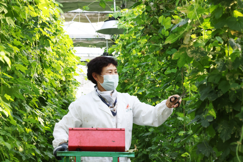 寒冬時(shí)節(jié),崗埠農(nóng)場高效農(nóng)業(yè)示范園11號(hào)大棚內(nèi)一片春意盎然。一株株百合花挺拔站立,不少花苞已露出粉色,在綠葉的襯托下格外嬌艷動(dòng)人。去年,崗埠農(nóng)場高效農(nóng)業(yè)示范園大力發(fā)展鮮切花產(chǎn)業(yè),引進(jìn)了“中國紅”“索蚌”等百合花品種,共種植14萬株。通過為周邊種植戶提供技術(shù)指導(dǎo),農(nóng)場帶動(dòng)大家發(fā)展鮮切花產(chǎn)業(yè)。圖為工作人員正在整理百合鮮切花。