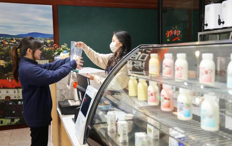 近日,位于蘇墾大廈的“簡蘇鮮奶吧”內格外熱鬧?,F釀酸奶、冰激凌、拿鐵咖啡等產品一經上架,便吸引不少顧客前來品嘗購買。