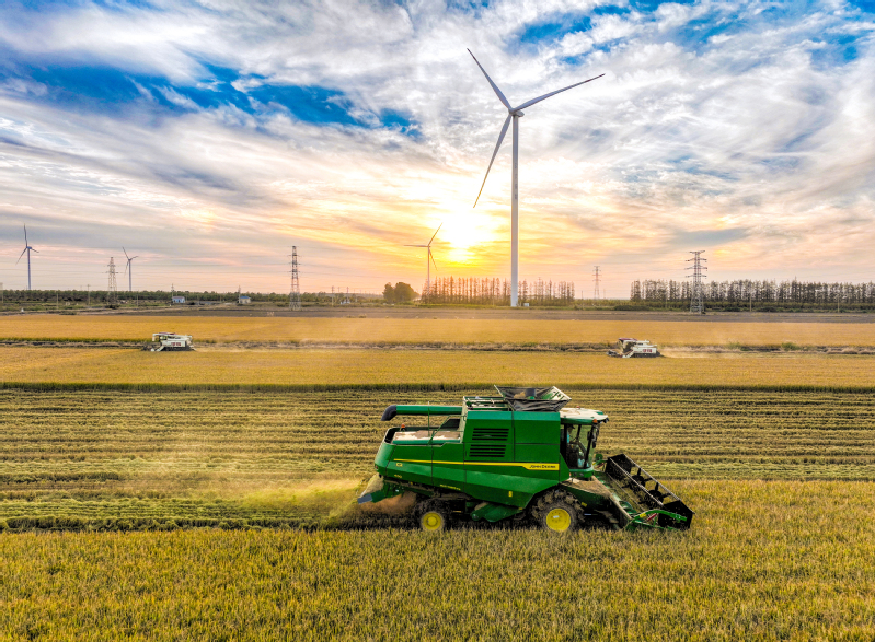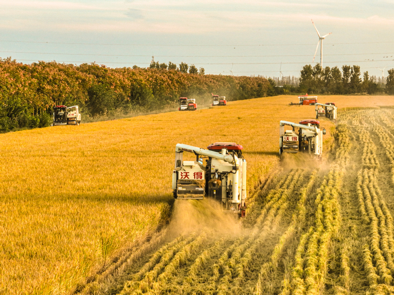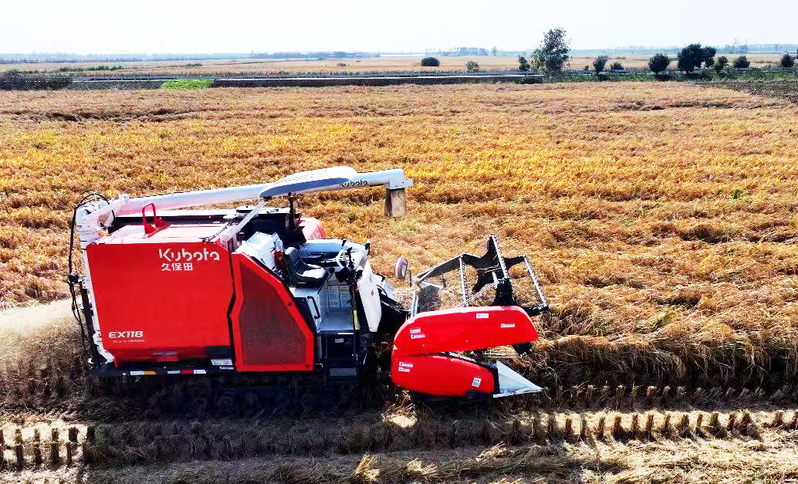 11月3日,蘇墾農發新洋分公司組織收割機械搶收優質水稻,確保秋糧顆粒歸倉。