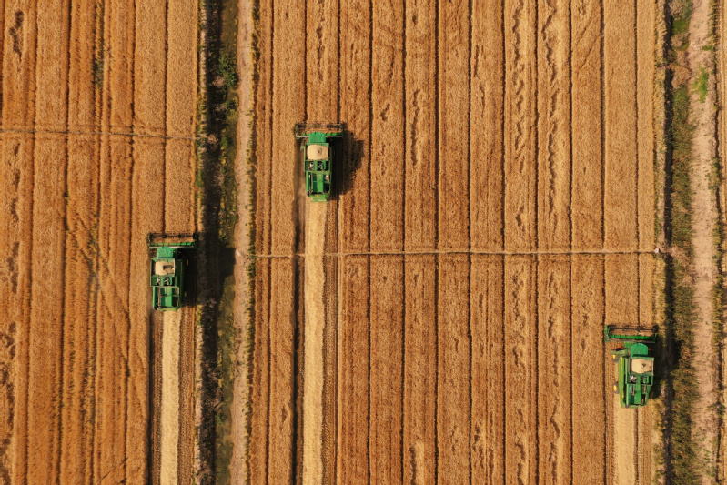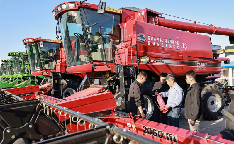 風吹麥田千重浪,麥粒漸滿穗金黃。5月22日中午,4臺約翰迪爾C2400大型聯合收割機開進了蘇墾農發濱淮分公司27大隊大麥田間,迎來了今年夏收“第一鐮”。伴隨著收割機陣陣轟鳴聲,一排排大麥被卷入收割機中,稻穗經過脫粒、碎桿等工序后收入機艙,輸送到運糧車上,并拖向場頭翻曬。半天時間,近300畝大麥收割結束。收割現場,農水中心和大隊管理人員在田間檢查收割質量?!斑@是我們今年‘三夏’的首次收割,我們前期對24臺收割機進行檢修、調試、保養,確保農機以最佳狀態投入到夏收工作中,務必要把收割損失率降到最低?!鞭r水中心副主任孟琪表示?!敖衲炅a區大麥單產有望超去年,按照‘三夏’動員會部署,堅持質量和標準化,搶抓晴好天氣開展收割作業,計劃在28日前完成六生產區的大麥收割工作,充分利用好把大麥的茬口優勢,奠定秋糧豐產基礎?!绷a區主任盧剛說。
