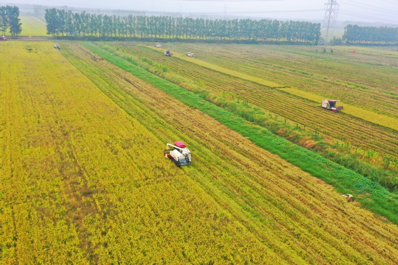 面對(duì)陰雨頻繁、氣溫波動(dòng)的考驗(yàn),崗埠農(nóng)場(chǎng)迅速應(yīng)對(duì),以應(yīng)收盡收、應(yīng)種盡種為原則,全面打響搶收搶種“閃擊戰(zhàn)”,建立起“氣象預(yù)警—機(jī)械調(diào)配—技術(shù)指導(dǎo)”全鏈條響應(yīng)機(jī)制,結(jié)合作物成熟度制定搶收計(jì)劃,科學(xué)調(diào)配農(nóng)機(jī)并做好維修保障,確保秋糧顆粒歸倉(cāng),冬小麥播種及時(shí)落地。