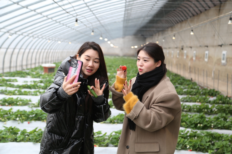 1月9日下午,崗埠農場公司富民農業科技園邀請了連云港市當地知名抖音主播,走進溫室大棚里,現場指導園區工作人員線上推銷果蔬產品,積極拓寬銷售渠道,擴大知曉率。